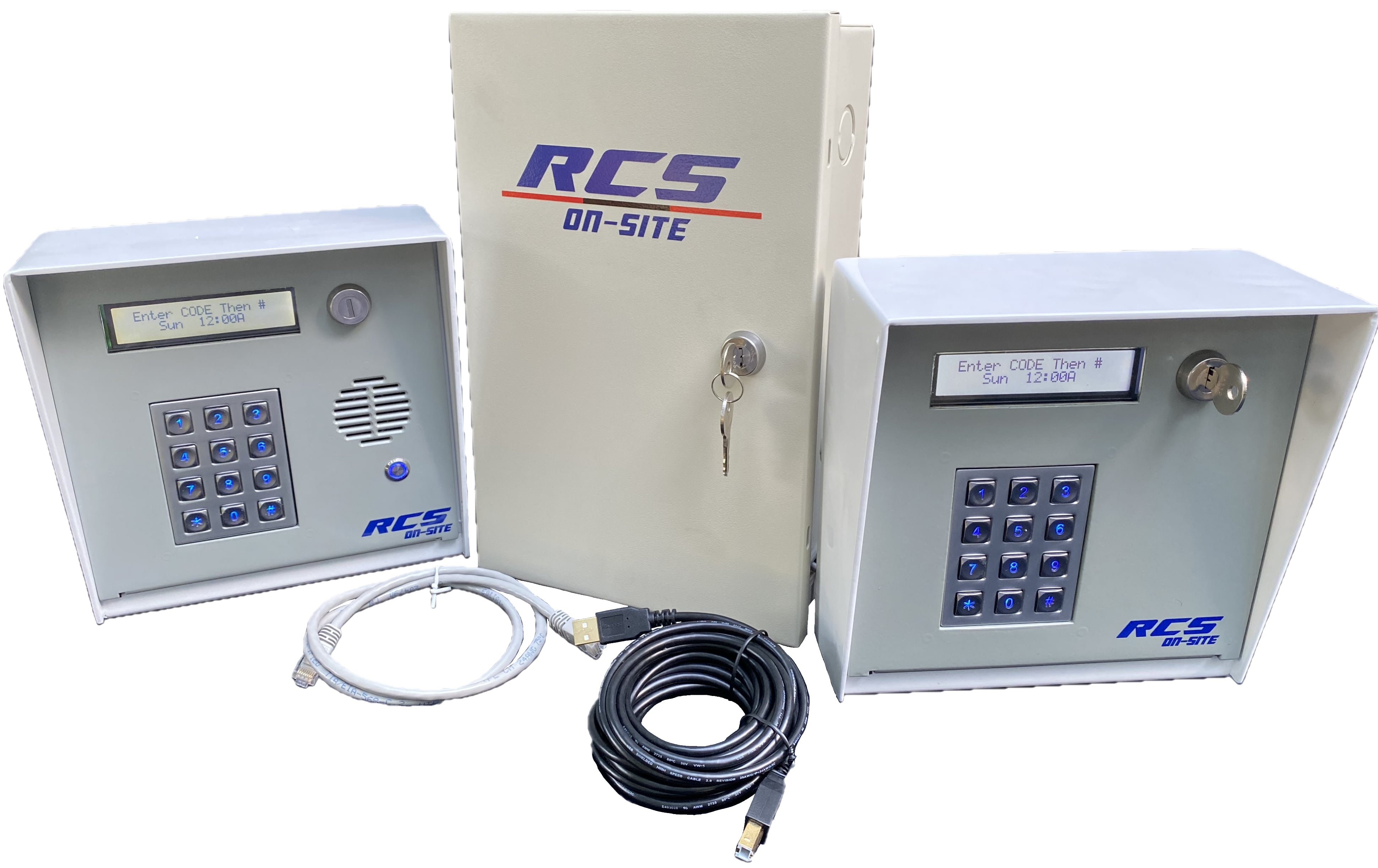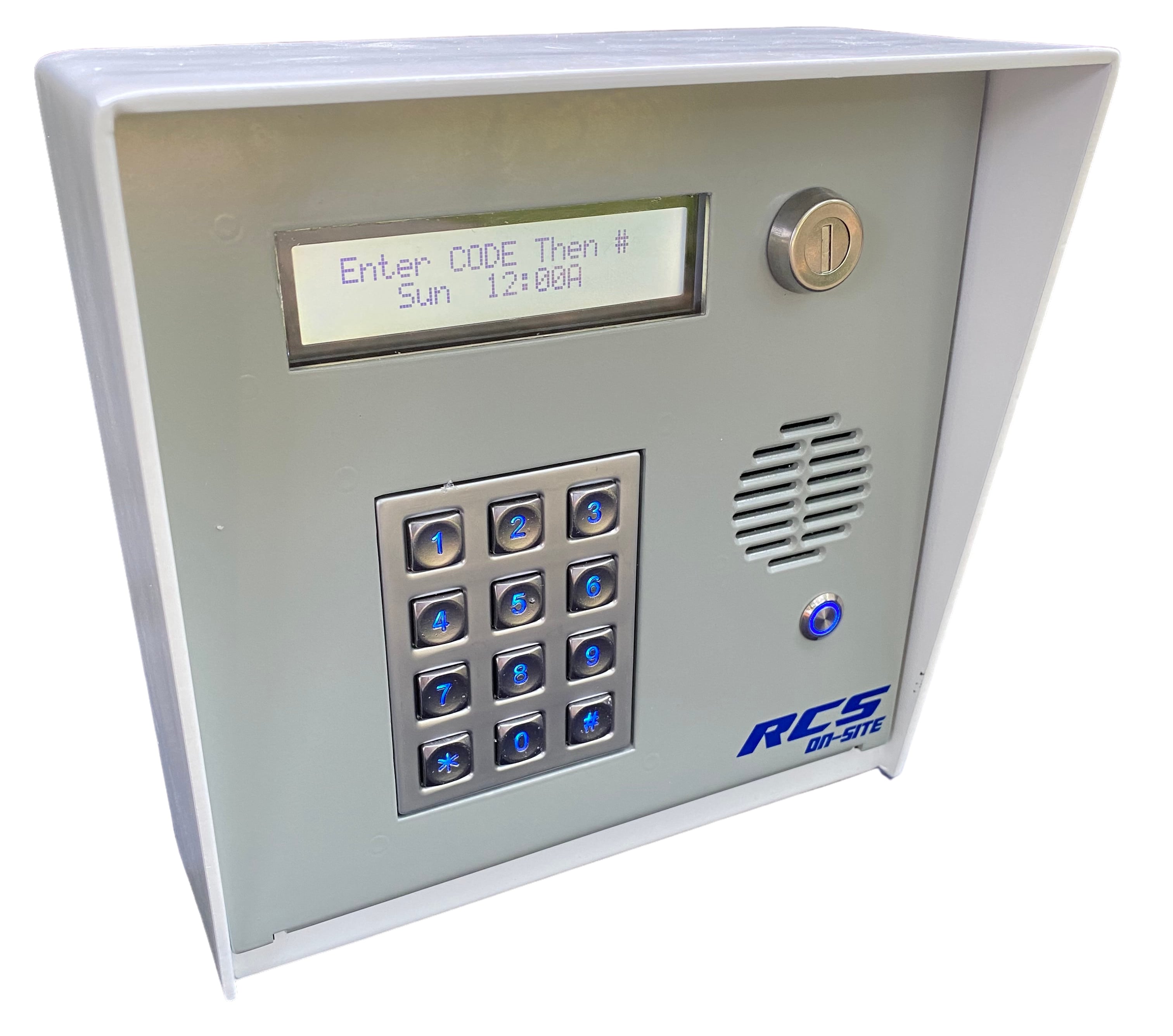 RCS On-Site Keypad Controller: This keypad or prox card reader controller is the hardware behind an access control system designed for self storage facilities. It is easy to program valid users and track activity at controlled access locations via an industry standard wired communication network (RS485). The unit is built for ease of customer use and service dependability. The On-Site controller includes an industrial grade, back-lit keypad, two line customer display and powder coated aluminum enclosure. The controller board is protected with heavy-duty surge protection devices on both the power and communications inputs. It has also been designed for easy field service of replacement parts if needed. Additionally the controller may be powered by 12-24 volts AC or DC which makes it easy to retrofit into existing locations.